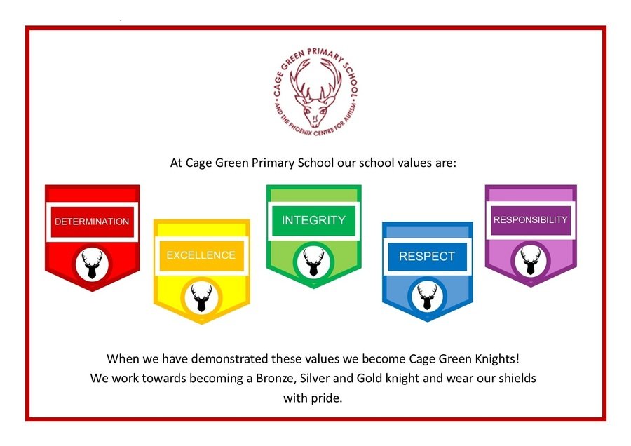 These core values are embedded in our day to day lives at Cage Green. We promote them with the children during lessons, circle times, assemblies, playtimes and in every interaction that we have.