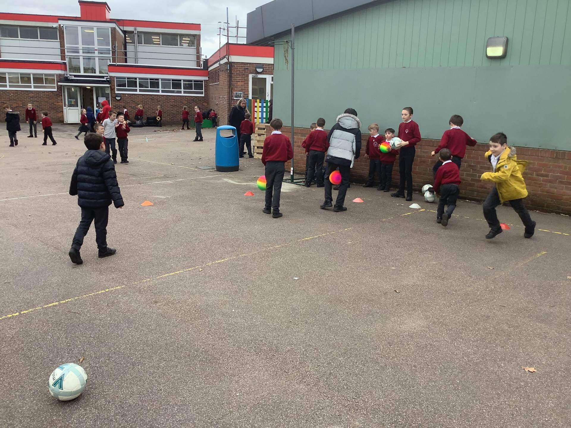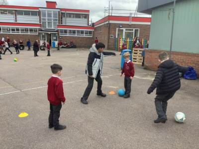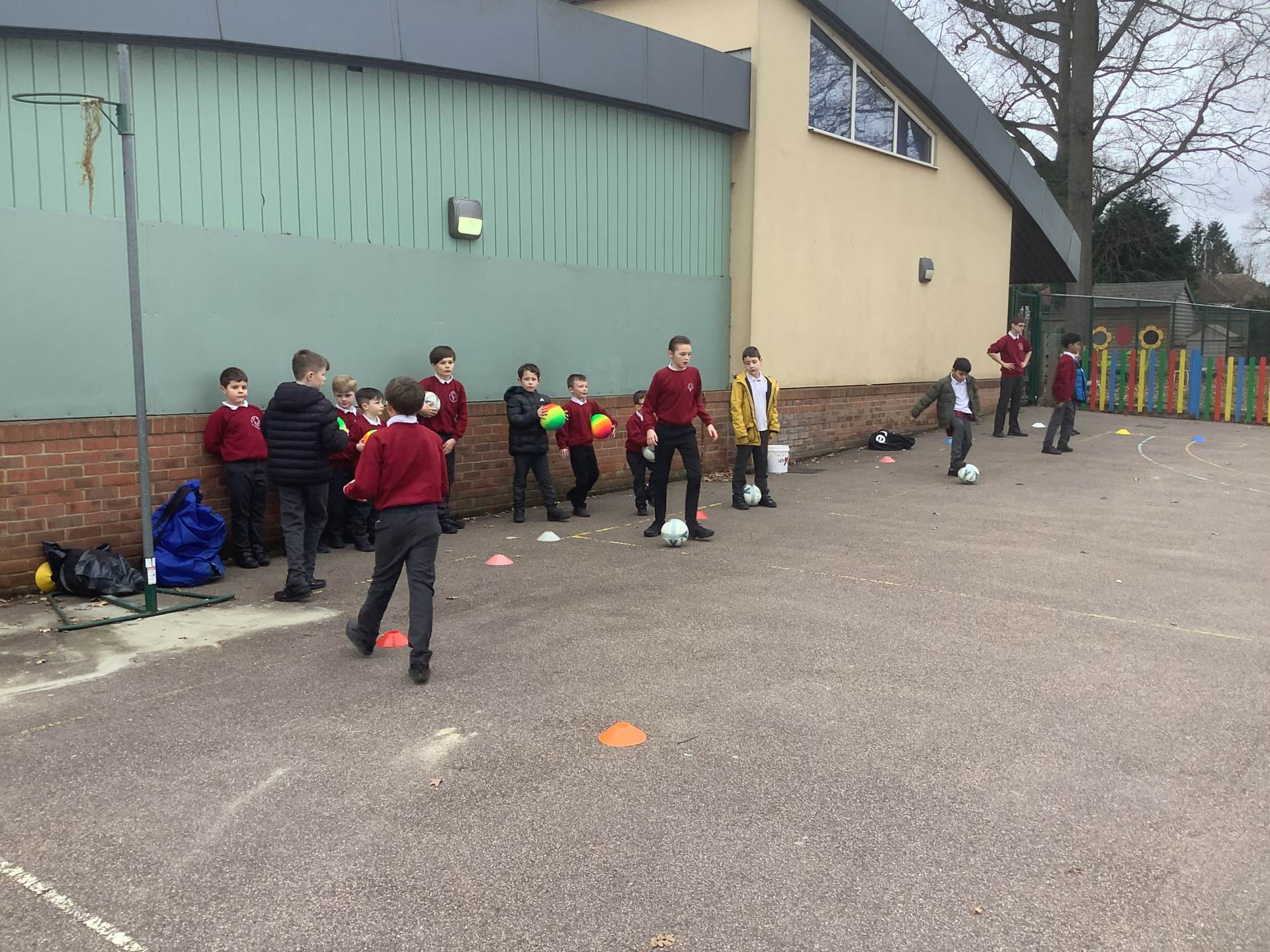 Year Six children are running a football skills club for the younger children. The club started as a Thursday lunchtime only but is expanding into Tuesdays and Thursdays (the days when we don't have a sports coach) so the children have opportunities every day. The children run this club themselves, as you can see from the letter below. They make their own choices and manage the organisation themselves.
